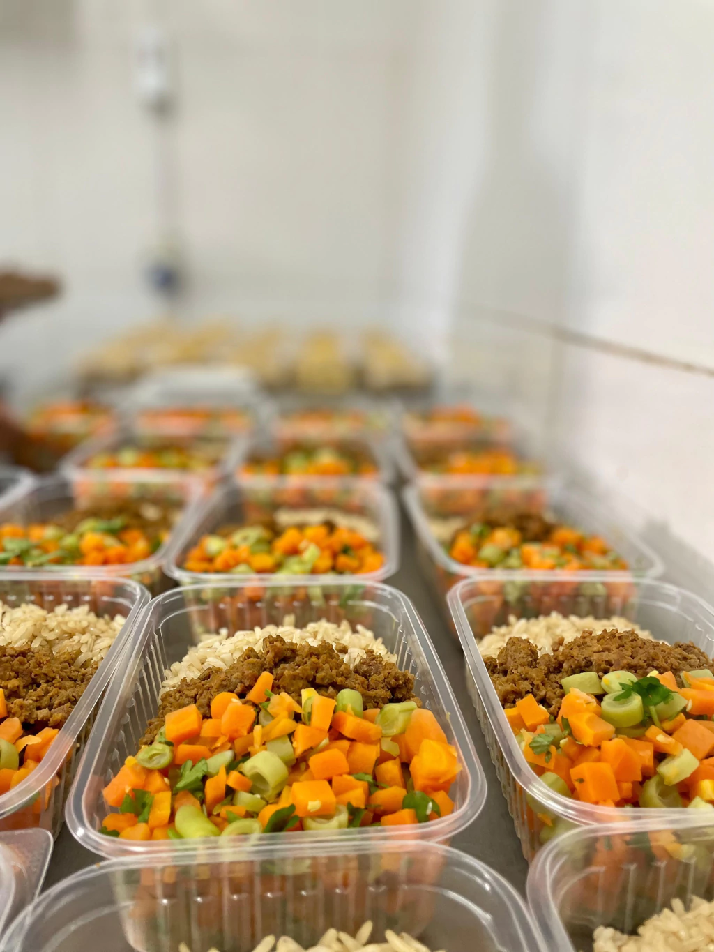 Patinho moído bem temperadinho com páprica doce e louro. Acompanhado de feijão carioca, arroz integral soltinho e uma seleta de legumes colorida e levemente salteada.